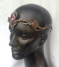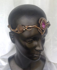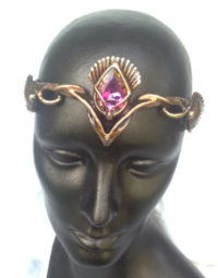 Can be worn across the forehead, at the hairline, as a hairband or hatband. Also looks great as a choker.